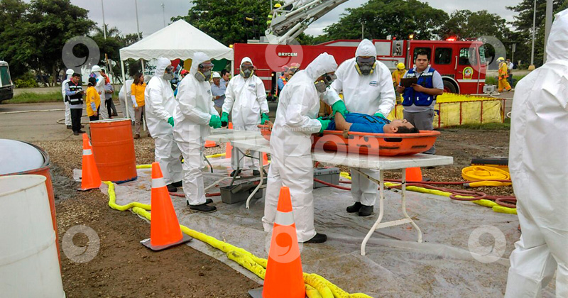 En la zona industrial, simulan el derrame de una sustancia tóxica