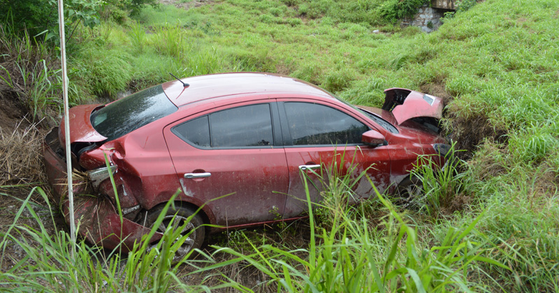 Automovilista pierde control de su vehículo y sale del camino para quedar en el lecho del afluente; su esposa y su pequeño hijo sufren lesiones y tuvieron que ser hospitalizados