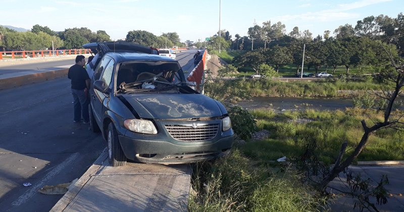 Mujer alcoholizada se ‘clava’ hacia un costado al atravesar un puente, trepa a la banqueta y choca con un muro y queda a centímetros de caer al San Marcos