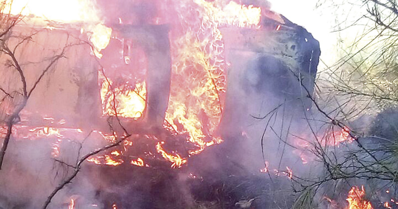 Horroroso fin tuvo una mujer al incendiarse su auto después de volcar, varias personas entre ellas militares, observaron la escena sin poder intervenir