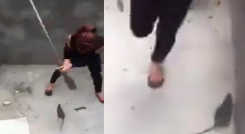 En un video que fue difundido en las redes sociales se observa el momento en el que la mujer lucha para acabar con el animal pero no lo logra