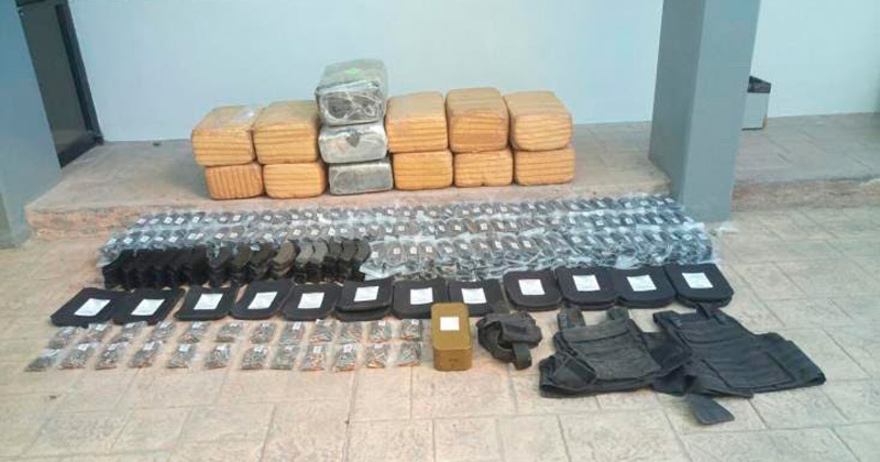 Efectivos de la Policía Estatal aseguraron en Reynosa una fuerte cantidad de arsenal de uso exclusivo militar, así como 125 kg de marihuana
