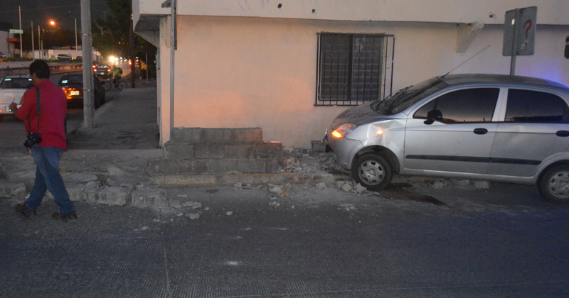 Conductor alcoholizado se estrella en la protección de una casa en el 24 Juárez, luego de que no pudo controlar su auto en esa curva del eje vial