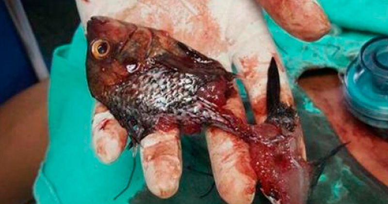 Los sanitarios tuvieron que extraerle el pez con unos forceps de la garganta