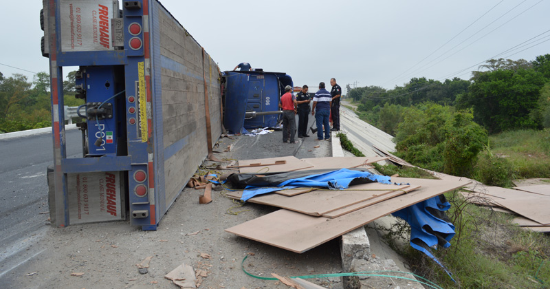 Toneladas de hojas de aserrín prensado le caen encima a un ciclista que en esos momentos iba pasando a un lado de un tráiler que volcó y tiró la mercancía