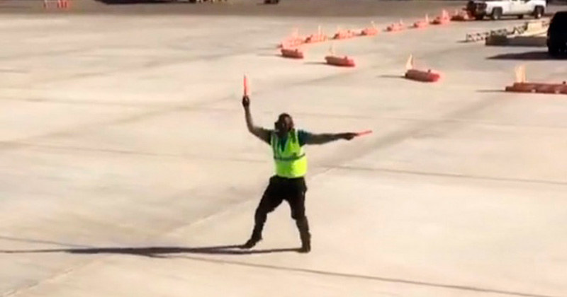 Kyran Ashford se convirtió en un fenómeno en redes sociales tras su rítmico acompañamiento a un avión que se preparaba para despegar en un aeropuerto de NY