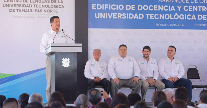 El mandatario tamaulipeco también anunció la edificación de la barda perimetral de la Universidad Tecnológica y la construcción de gimnasios para la práctica de deporte en las unidades académicas de la UTTN.