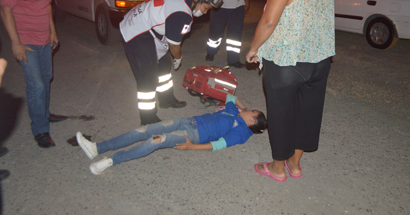 La mujer cae de la motoneta en que viajaban, pero él prefiere emprender la huida tras el percance; los mirones fueron quienes llamaron a la Cruz Roja