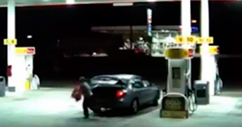 Las imágenes fueron captadas en una estación de gasolina en Alabama
