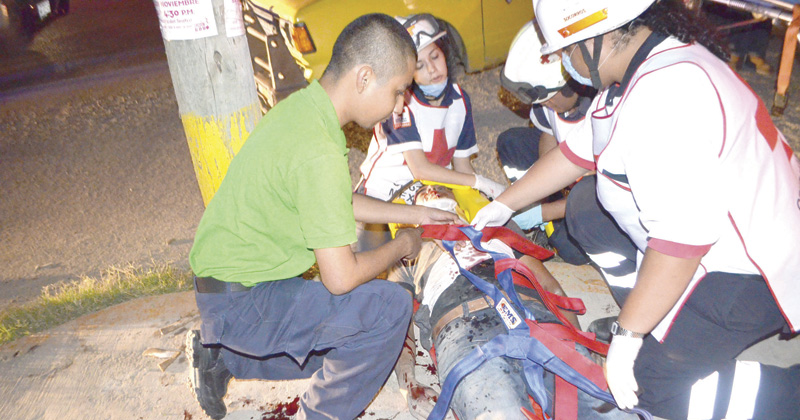Motociclista y su novia acaban con serias lesiones al estrellarse contra una camioneta a la que pretendían adelantarse en el 35 Juárez