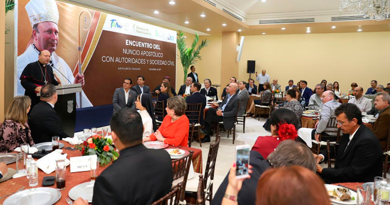 El Nuncio Apostólico Franco Coppola, sostuvo un encuentro de ideas y valores con autoridades y asociaciones civiles, donde participaron el gobernador Francisco García Cabeza de Vaca y el alcalde Enrique Rivas