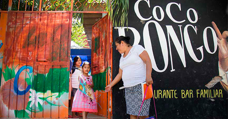 El restaurante-bar venido a escuela, conocido como Coco Bongo, inició con 18 alumnos y ahora alberga a 35 niños y niñas de 5 a 12 años