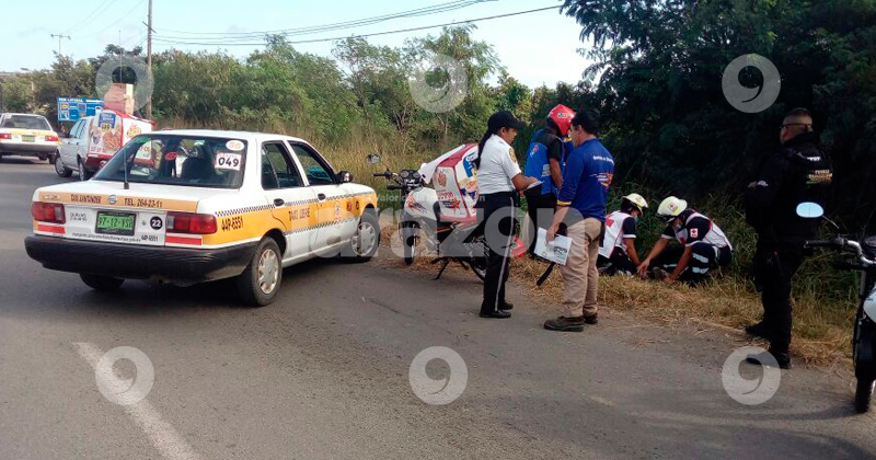 ALTAMIRA, Tamaulipas.-Un motociclista resulta herido en una colisión con un automóvil habilitado como taxi, en la Avenida de la Industria, en Altamira.