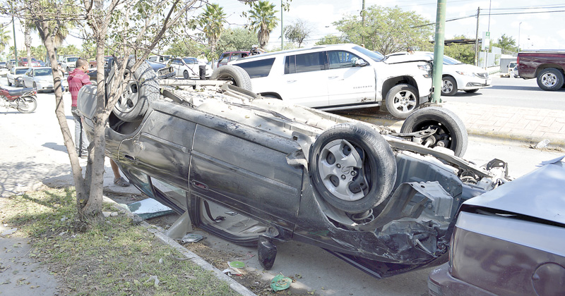 Chofer de camioneta provoca choque y volcadura frente a la ‘Coca’; tumbó a un motociclista e impactó a un automóvil que del golpe maromeó y acabó llantas arriba, afortunadamente nadie murió