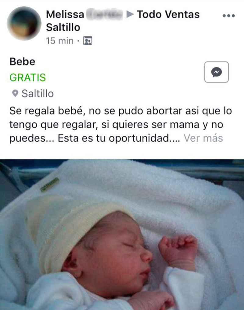 Regalan bebé en grupo de Facebook