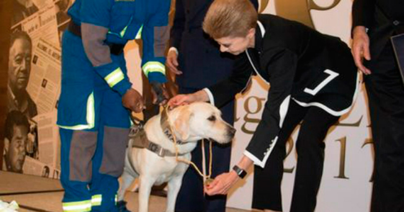 Fundación otorga medalla honorifica a la perrita rescatista «Frida», por su labor en los sismo del pasado mes de septiembre