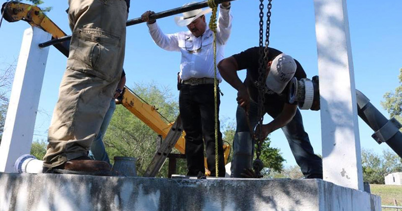 SAN FERNANDO, Tamaulipas.- Atendiendo la petición de ciudadanos del ejido División del Norte, el alcalde José Ríos Silva visitó la comunidad para hacer entrega de un motor, bomba de 10 caballos de fuerza e interruptor termomagnético para la reactivación del pozo de agua que brinda suministro a los residentes.