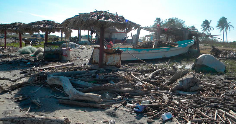El paseo turístico luce desolado palapas dañadas y lleno de palizada