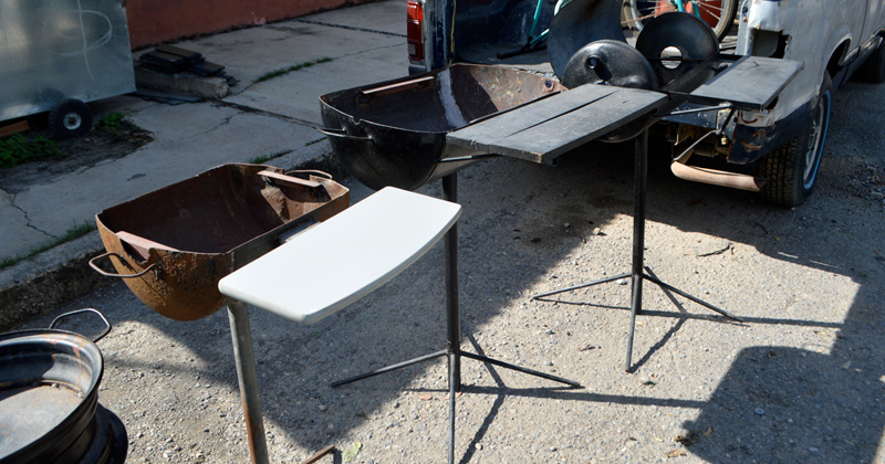 Humberto Trejo de la Cruz, aprovecha material en desuso; tanques de gas, boiles, rines y otros materiales para fabricar asadores y otros muebles