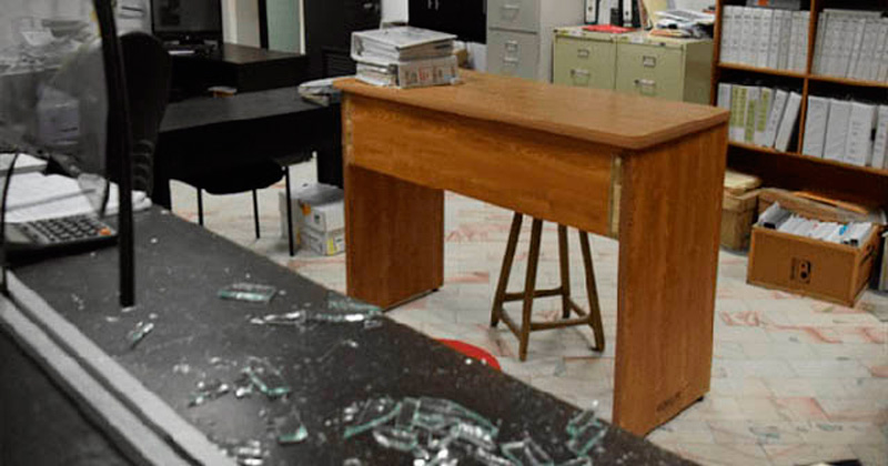Para poder ingresar a las instalaciones, los ladrones rompieron dos cristales y posteriormente destrozaron diverso mobiliario al igual que una máquina expendedora de comida y bebidas.