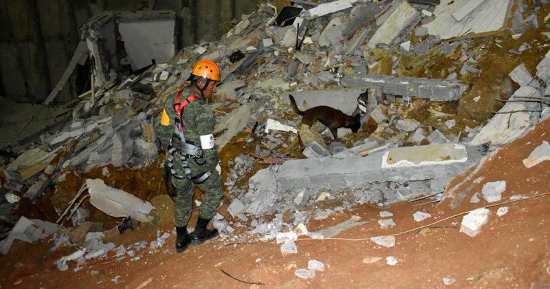 Binomio canino ubica a desaparecida en derrumbe de Monterrey