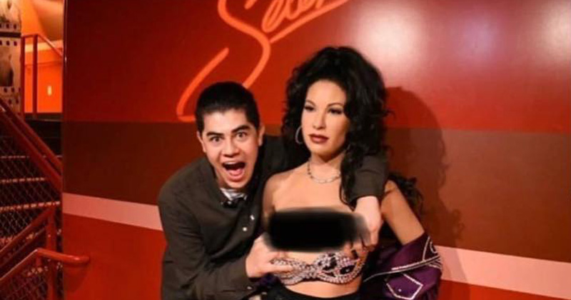 Un joven le bajó el bra a la figura de Quintanilla, mientras posa para la foto, hecho que molestó a los fanáticos