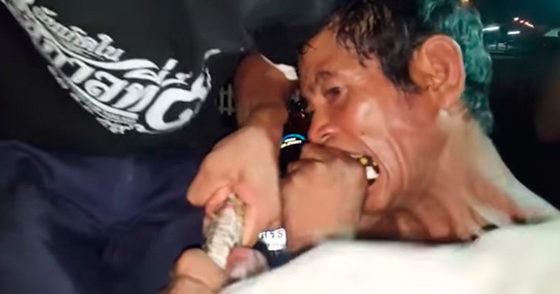 Hombre muerde a una serpiente para salvarla