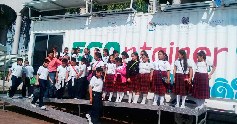 Es reutilizado con fines ecológicos y autosustentable, llegó a la explanada para que todos los niños y niñas puedan conocerlo