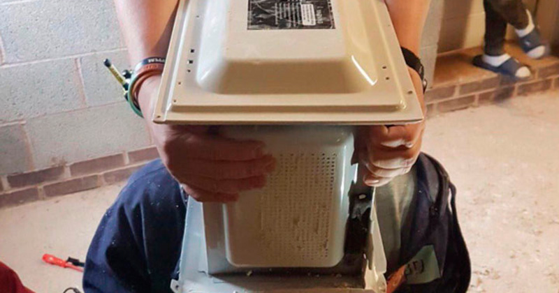 Mete su cabeza en microondas lleno de cemento