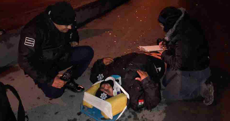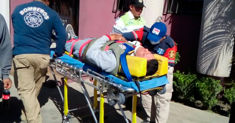 Cuerpos de seguridad y emergencia llegaron al rescate del elemento vial que quedó atrapado dentro de la patrulla y cuando al fin pudo ser sacado, fue trasladado al Centro de Especialidades