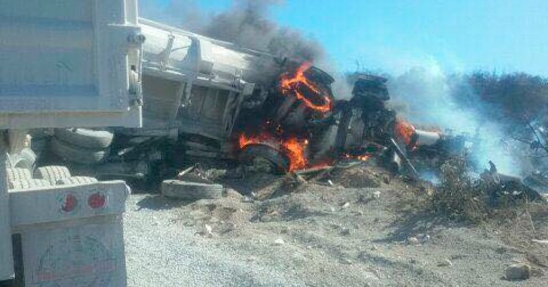 El camión chocó contra otro y en el impacto comenzó a incendiarse. La identidad del ahora occiso se desconoce. Las autoridades investigan