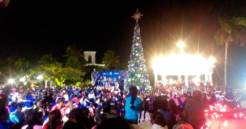 Altamira.- Francisco Javier García Cabeza de Vaca encendió el pino navideño e inauguró la Pista de Hielo en Altamira.