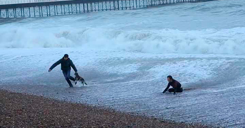 A través de Facebook se dieron a conocer las sorprendentes imágenes, donde una mujer se mete al mar en Brighton para rescatar a su mascota