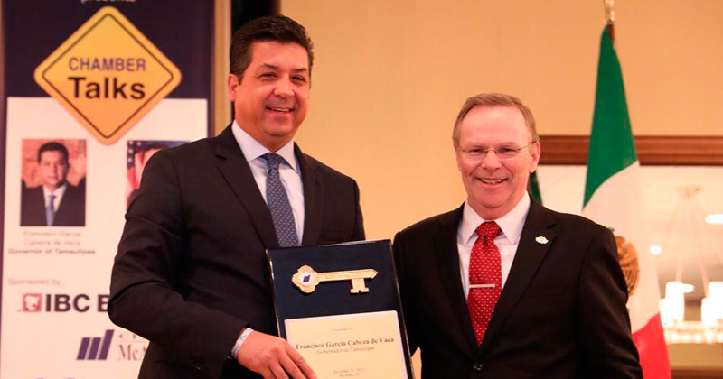 El mandatario participó en foro de diálogo realizado en Texas y se convirtió en el primer Gobernador tamaulipeco en recibir las llaves de la ciudad de McAllen.