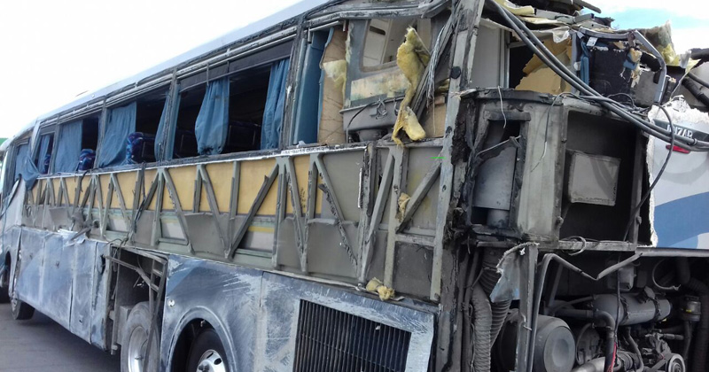 El autobús volcó y luego fue chocado por un tráiler