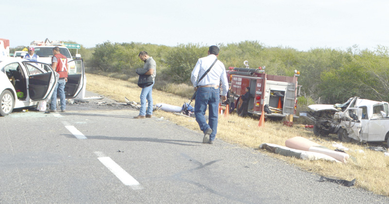 Un automóvil Mazda de reciente modelo y una camioneta Ford Lobo se estrellan en el kilómetro 64 de la carretera Victoria-Matamoros; conductor y copiloto de las dos unidades perdieron la vida