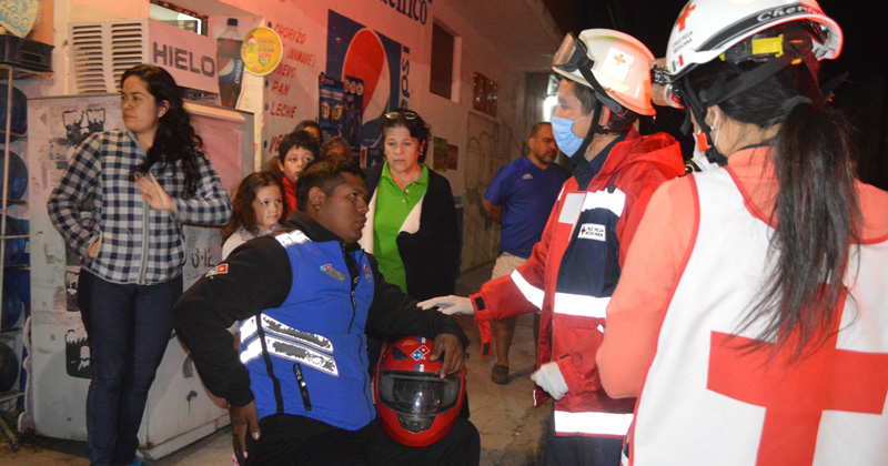Regresaba de entregar una pizza pero un camión se interpone en su camino a la altura del 21 Zaragoza, a pesar del aparatoso impacto el motociclista sólo sufrió heridas leves
