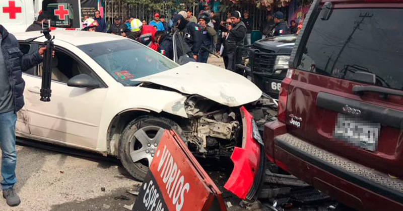Joven resulta lesionado pues al presuntamente escapar de autoridades estatales, pierde el control invade los carriles contrarios y se estrella de forma frontal con otro vehículo