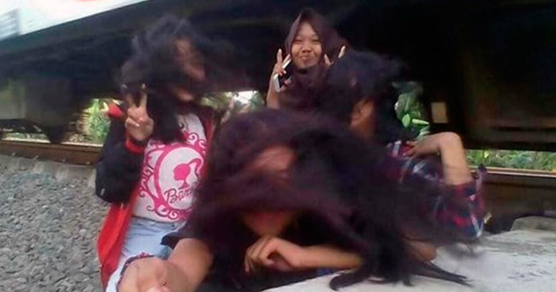 En las imágenes tomadas por las adolescentes se ve el momento en que el tren pasó detrás de ellas y uno de los vagones alcanzó a golpearla