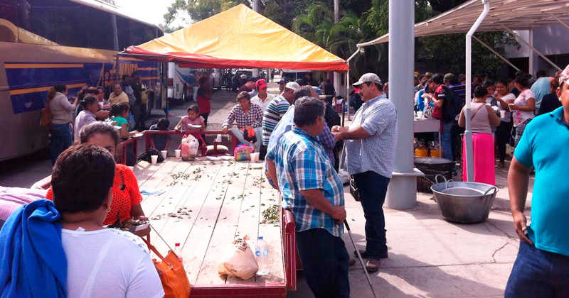 A bordo de 7 autobuses, mini vans y vehículos particulares, arribaron y se apostaron en un costado de la avenida Tamatán