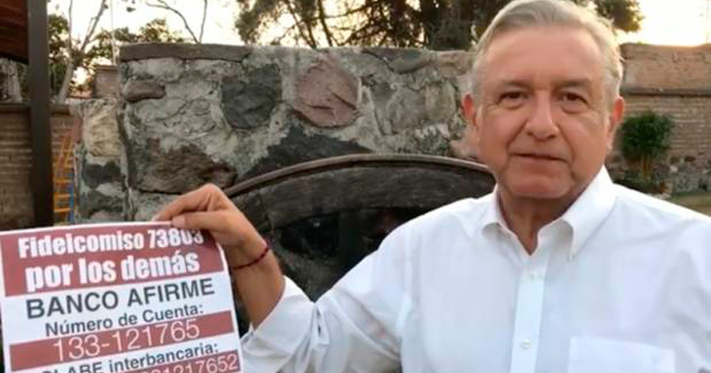 AMLO dona 800 mil pesos de su cuenta a damnificados