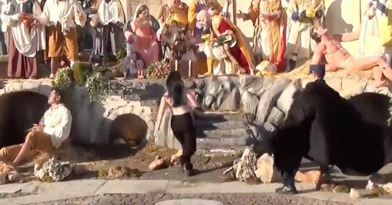 Activista semidesnuda trata de llevarse al niño Jesús del Vaticano (VIDEO)