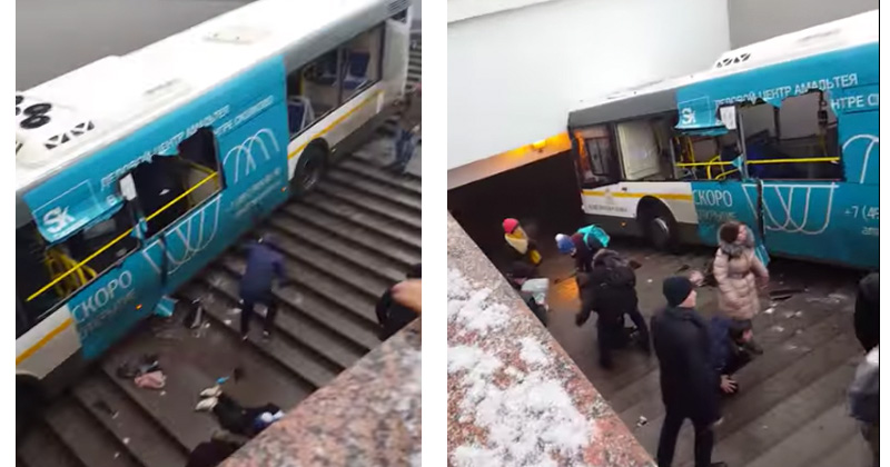 Graban cómo un autobús se pone en marcha y arrolla a varias personas
