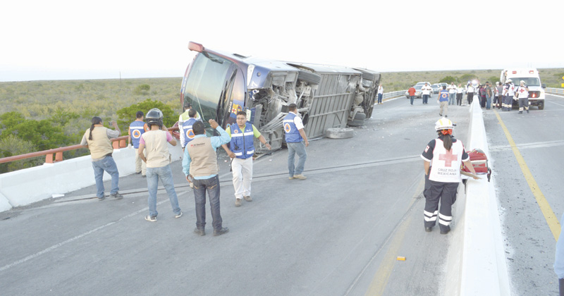 El chofer dice que lo encandiló el Sol, se estrella contra muro central y voltea sobre un costado; 5 pasajeros resultan heridos