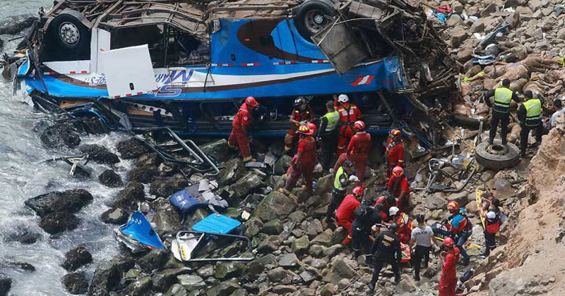 El vehículo cayó a un abismo tras chocar con un tráiler frente a la costa en el Pacífico