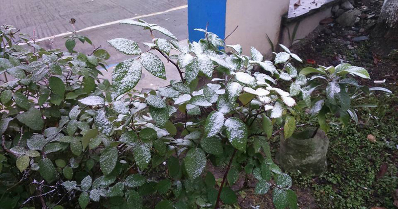 A través de redes sociales publicaron una serie de fotografías, donde se aprecia las plantas cubiertas de una ligera capa de hielo