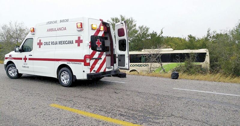 Unidad que procedía de Veracruz con destino a Reynosa se sale de cinta asfáltica en el tramo Soto la Marina-Los Rayones; tres usuarios resultan heridos