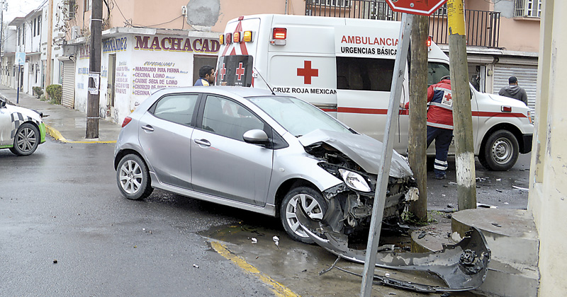 Se le olvida hacer alto y micro la embiste para terminar impactada con un poste de Teléfonos