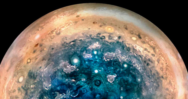Las fotografías fueron tomadas cuando la nave espacial Juno estaba a poco más de un diámetro de la Tierra del “gigante gaseoso”