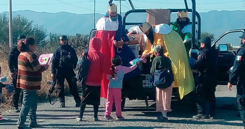 Escoltan ESTATALES a los Reyes Magos al entregar regalos
